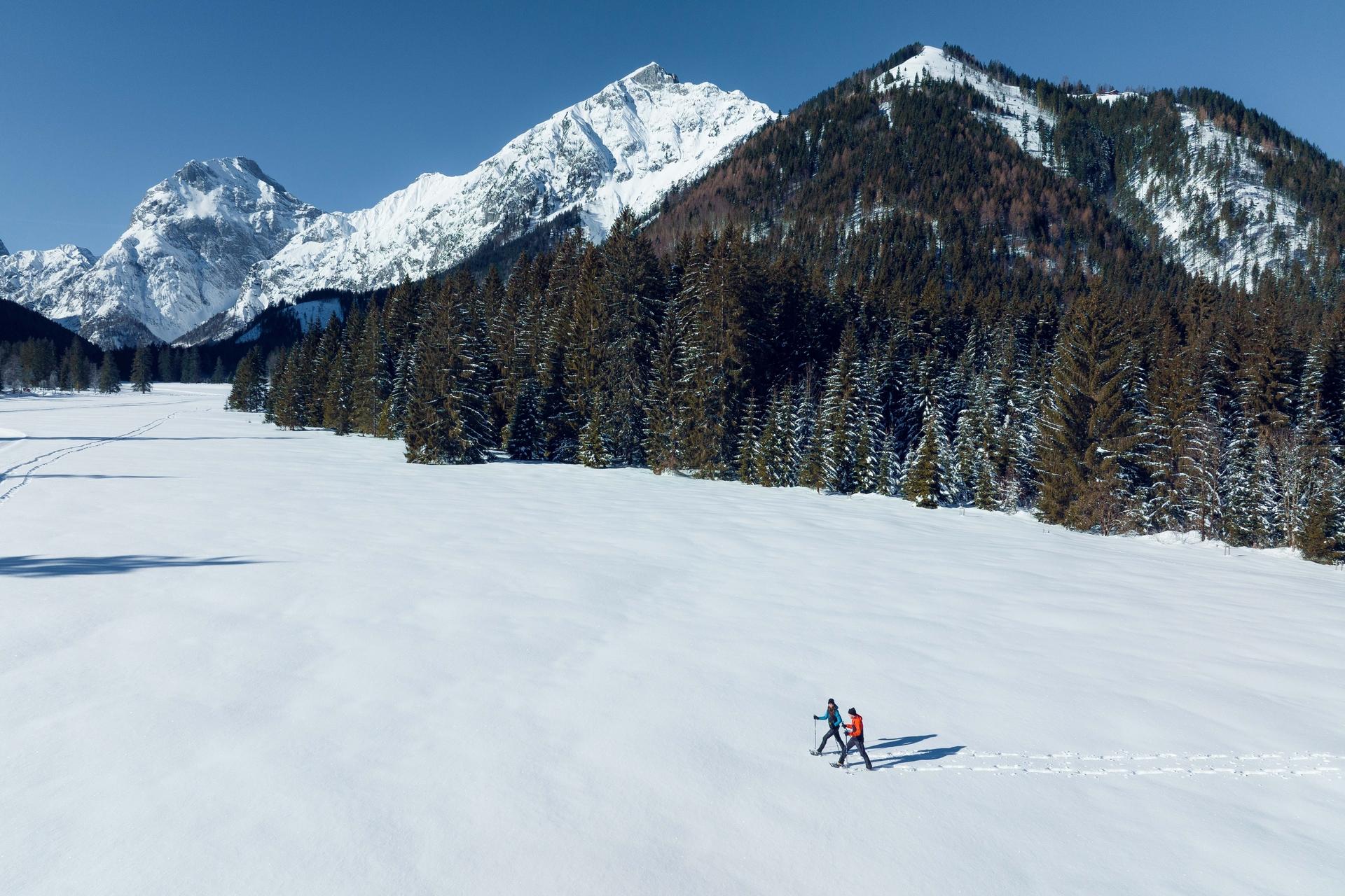 Bei jedem Schritt knirscht der Neuschnee unter den Füßen und in der kalten Winterluft glitzern tausende Eiskristalle. Es gibt kaum eine schönere Art, den Winterzauber am Achensee zu erleben, als beim Winterwandern.