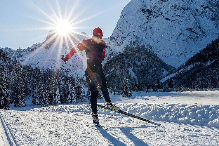 Im einstündigen Langlauf Workshop Skating am Achensee steht der perfekte Einstieg oder das Auffrischen der Skating-Technik im Vordergrund. Dank qualifizierter Anleitung fällt es leicht, die wichtigsten Bewegungsabläufe und Tricks direkt auf der Loipe umzusetzen. Die passende Skatingausrüstung ist im Paket enthalten und kann vor dem Workshop bequem im Hauptgeschäft anprobiert und abgeholt werden.