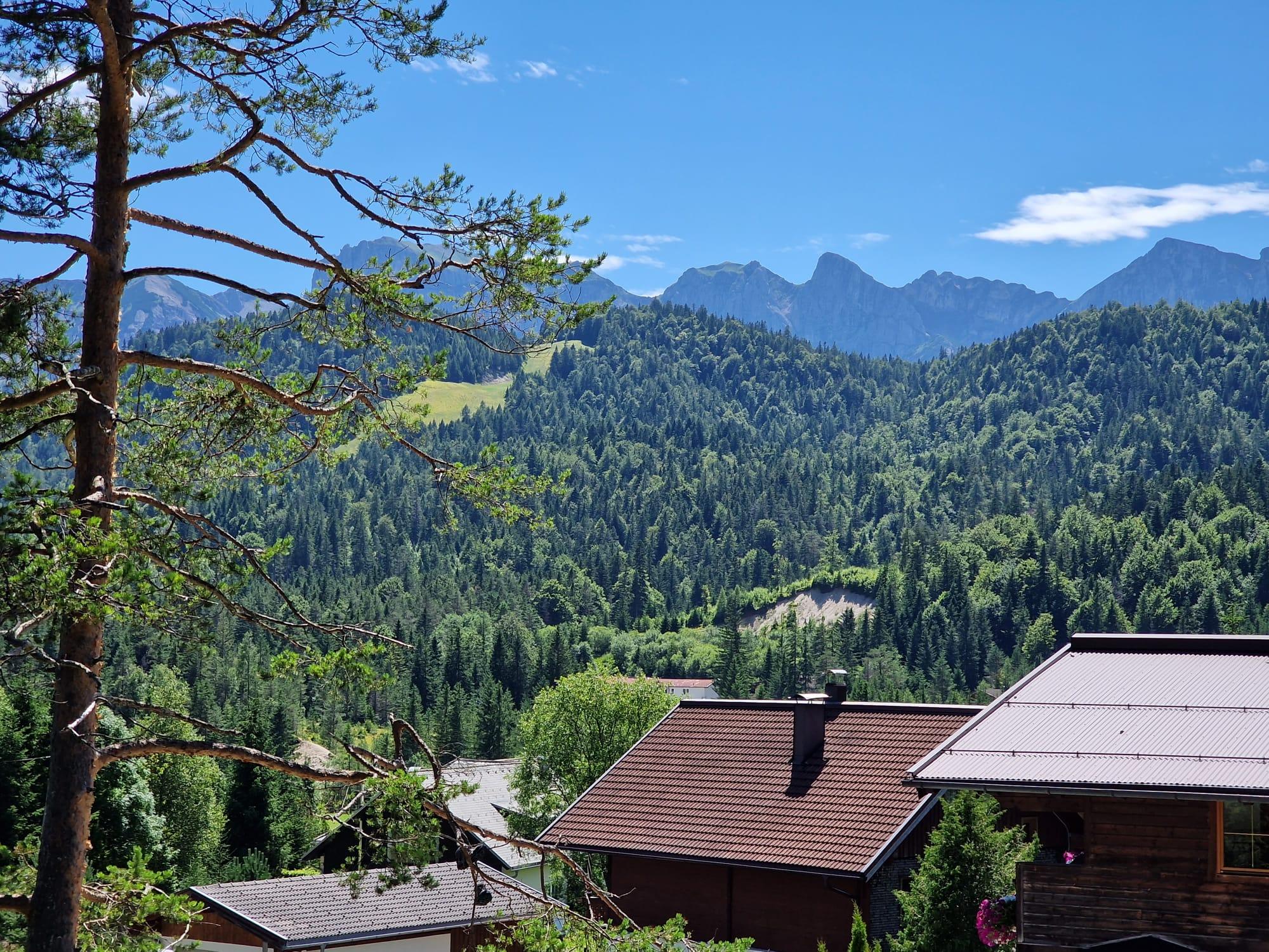 Loipen und die beleuchtete Rodelbahn direkt hinter dem Haus. Busstation in 100m, Skilift in Sichtweite.