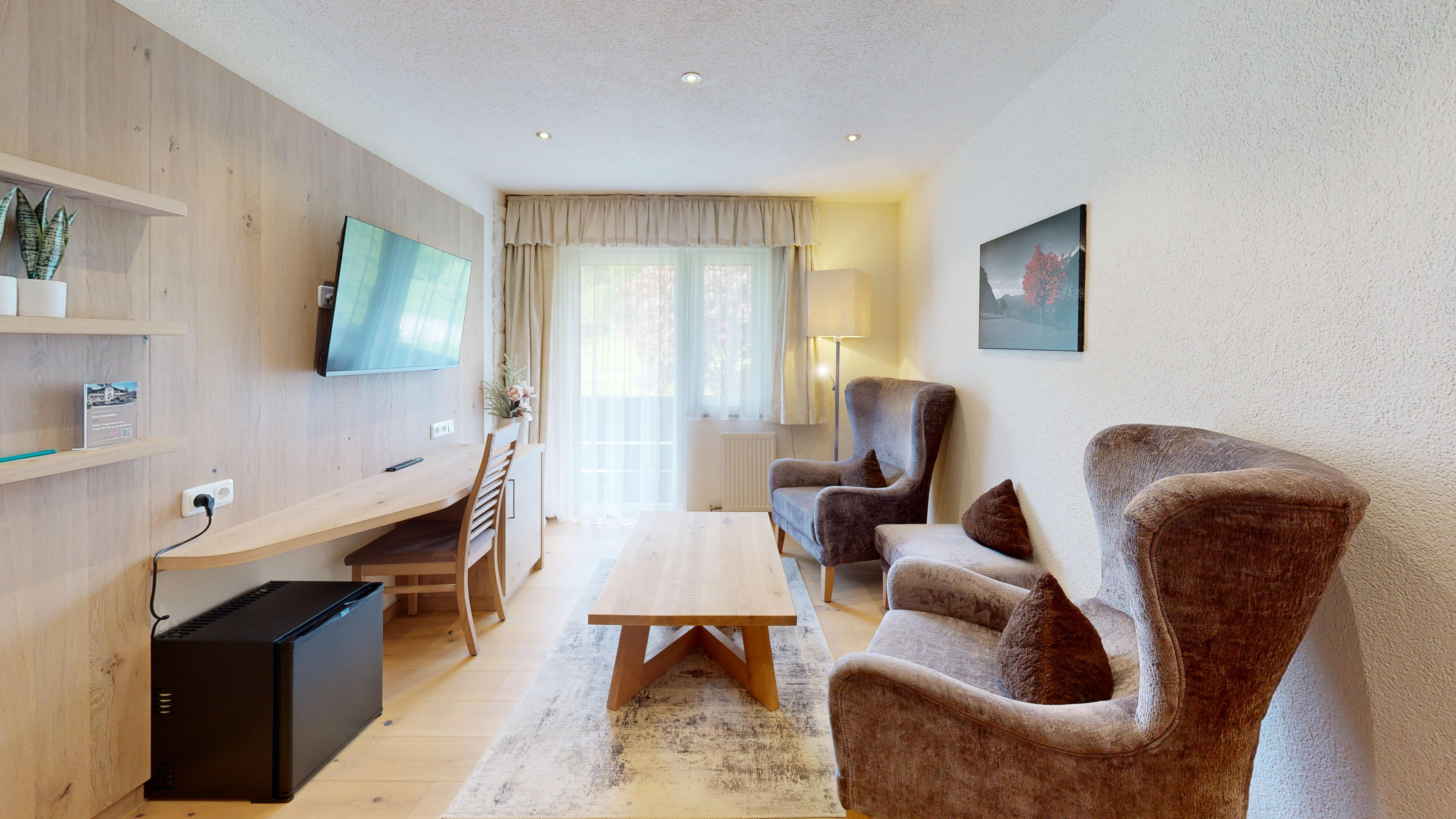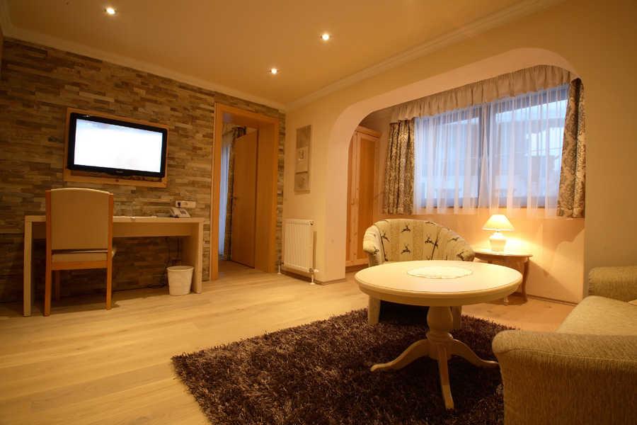 Alle Zimmer sind sehr großzügig gestaltet. Jedes Zimmer besteht aus getrenntem Wohn- und Schlafraum, sowie separater Dusche, WC, TV ist ca. 30m² groß und verfügt über einen Balkon. Unser Haus befindet sich direkt an den Langlaufloipen und am Golfplatz. Unsere Preise verstehen sich inklusive einem reichhaltigen Frühstück. Freundliche, familiäre Atmosphäre sowie bester Service sind unsere Garantie für Ihren Urlaub.