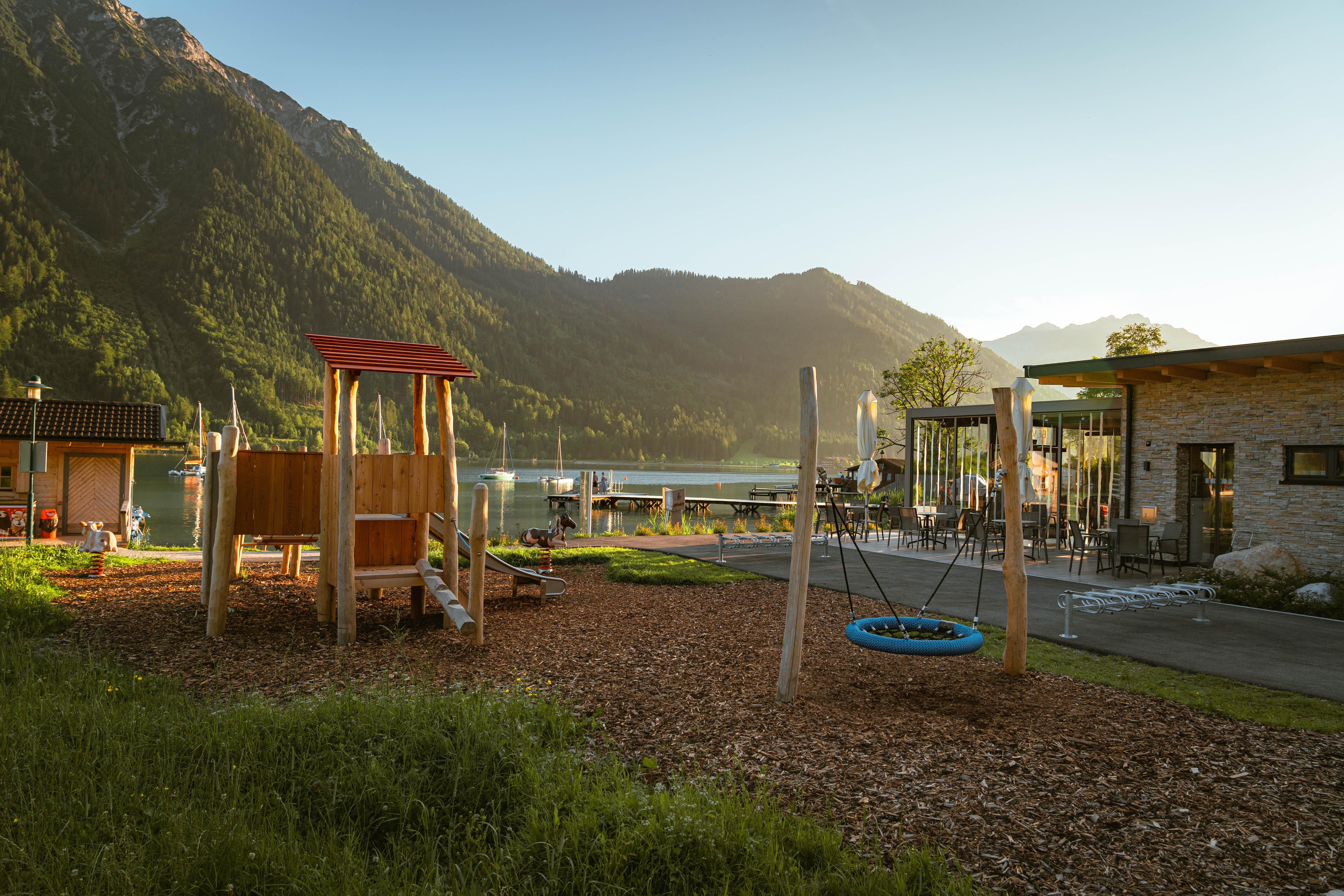 HALLO im Familienresort Buchau! Das 5 Smiley Kinderhotel direkt am kristallklaren Achensee in Tirol. Wo die Schnelllebigkeit des Alltags durch die einzigartige, malerische Kulisse der umliegenden Berg- und Seelandschaft rasch entschleunigt wird. Wo sich Wasserwelt & Wellness das Prädikat „well done“ verdienen, lecker Essen zum sehr guten Ton des Hauses gehört und die großen sowie kleinen Helden echter Spielwiesen bei unzähligen Erlebnismöglichkeiten das große Abenteuer finden. Ob einsam, zweisam oder gemeinsam Zeit genießen … ob draußen oder drinnen … mit dem umfangreichen Hotelangebot des Familienresorts Buchau finden alle von 0-99 ihr persönliches Glück und individuelle Urlaubsträume ihre Erfüllung.