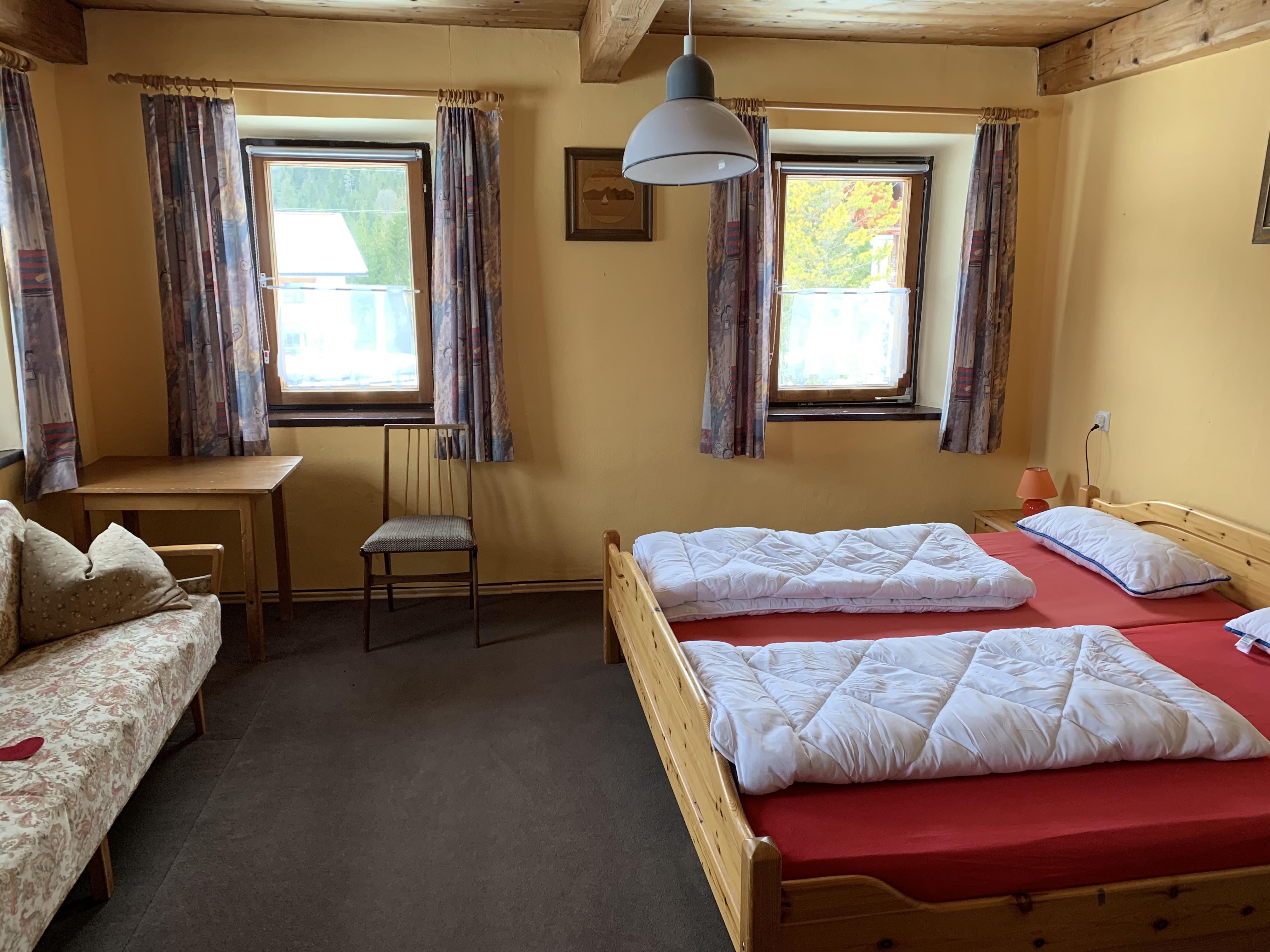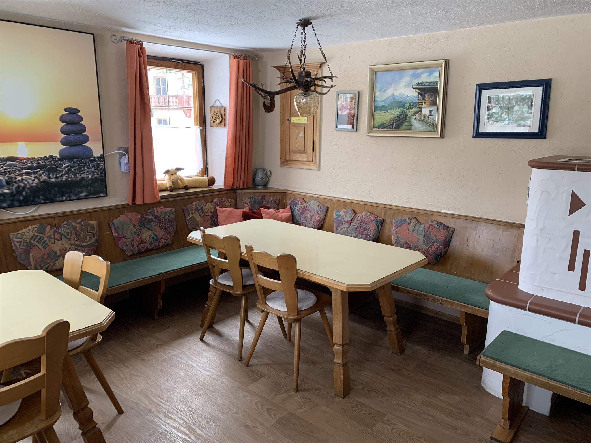 Ferienhaus für Selbstversorger. Komplett eingerichtet für 10 Personen.Mit Stube (Kachelofen ),Küche komplett eingerichtet,Holzofen,E-Herd mit Zeranfeld,Backofen.Kafeemaschine,Microwelle,Tooster.....Gemeinschaftsraum mit Fernseher,Kicker,Dart,Sitzecke,Bar,Kühlschrank und Schwedenofen. Bad mit zwei Duschen,WCund Abstellraum. im ersten Stock befinden sich die 7 Schlafzimmer. alle mit Fenster, Waschbecken, Infrarot-Bildheizung.Bettwäsche.. Bettbezüge müssen selber mitgebracht werden... !!! zwei WC