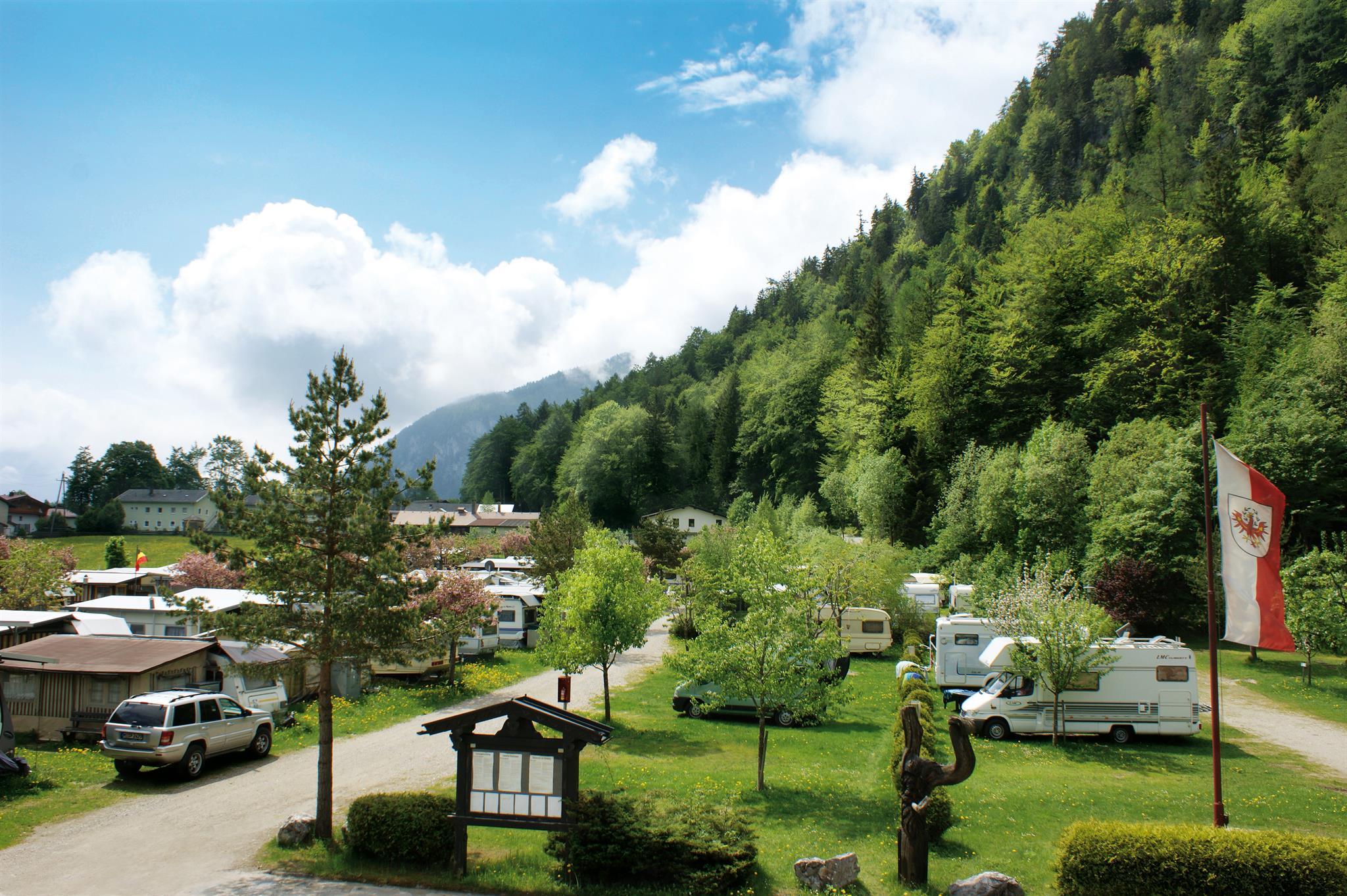Eingebettet von den schönsten Bergmassiven, dem Karwendel-Gebirge und dem Rofan- Gebirge liegt unser gemütlicher und familienfreundlicher Campingplatz "Karwendel-Camping" direkt am Waldrand. Die äußerst ruhige Lage des Platzes lädt Sie ein, hier bei uns einen erholsamen Sommer- und Winterurlaub zu verbringen. Die parzellierten Stellplätze sind 80-100 m² groß. Sie haben alle Strom- und Kabelfernsehanschluss. Wir bieten Ihnen neu renovierte gepflegte sanitäre Einrichtungen, sowie eine Waschmaschine, einen Wäschetrockner und einen Geschirrwaschraum. Für unsere kleinen Gäste haben wir einen großen Kinderspielplatz. Nach einem gelungenen Urlaubstag können Sie sich in unserem Restaurant veröhnen lassen. Im Bereich Campingplatz und in den Ferienhäusern steht Ihnen W-LAN (gegen Gebühr!) zur Verfügung! Klettern erfreut sich in letzter Zeit immer mehr an Beliebtheit. Unser Campingplatz liegt direkt am Einstieg des Bärenkopf Klettergartens!