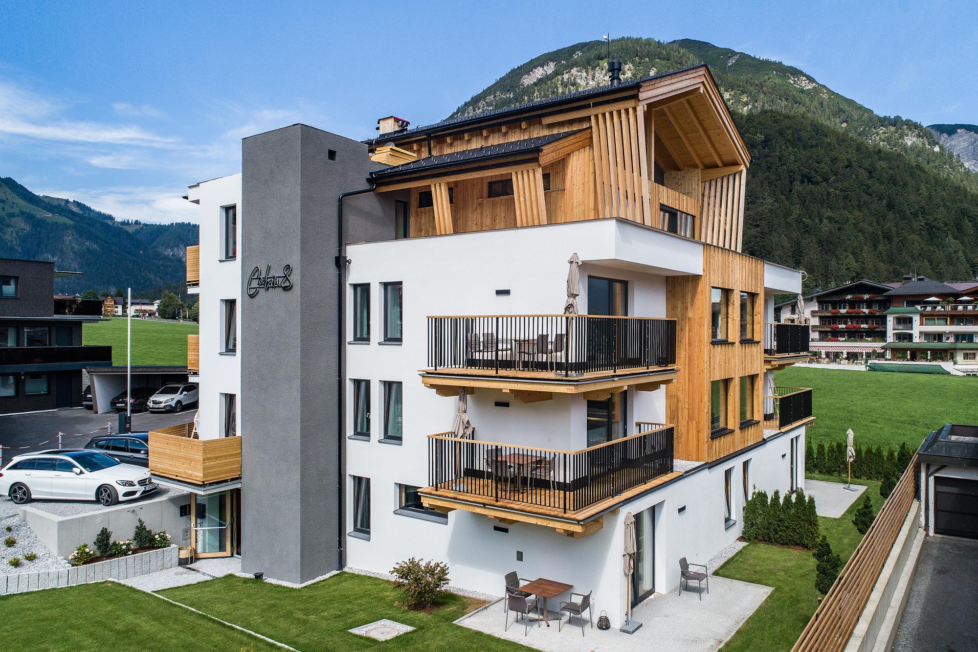 We paid special attention to cosiness and living comfort - warm colours and natural materials give Cabin8 the modern and alpine flair. We are looking forward to welcoming you!