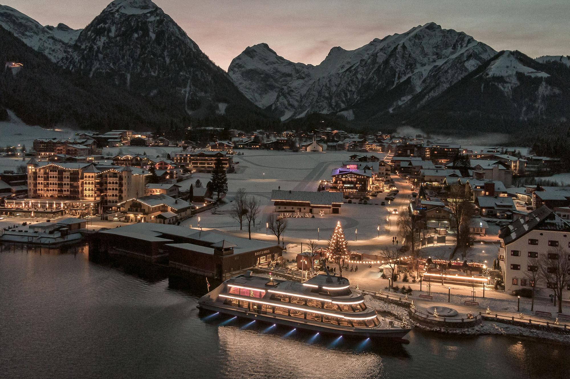 Inntal autobahn A12 (toll sticker required), Wiesing/Achensee exit, Achensee federal road B181, after 7 kilometers in the center of Maurach turn towards Pertisau. A toll-free journey via the Achenpass or Bad Tölz is also possible. From Munich to the Holzkirchen, Tegernsee, Achenpass or Bad Tölz motorway exit – across the national border via Achenkirch and Maurach to Pertisau. Arriving by public transport: Take the train to Jenbach train station. From there by public bus to Lake Achensee.