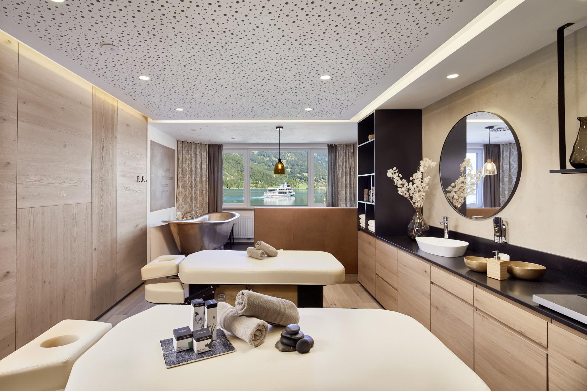Treat yourself to a well-deserved break in our modern wellness area, Vitarena Panorama SPA. The sauna landscape welcomes you with a beautiful lake view – just as it should be for a hotel at Achensee. Relax in our new indoor pool or in our separate whirlpool. The pool area also features an outdoor pool that is heated year-round. The new Panorama Lounge with bistro directly in the wellness area allows for a whole day of relaxation in a bathrobe at the Panorama SPA. Relaxing massages, healing and beauty baths complete the offering.