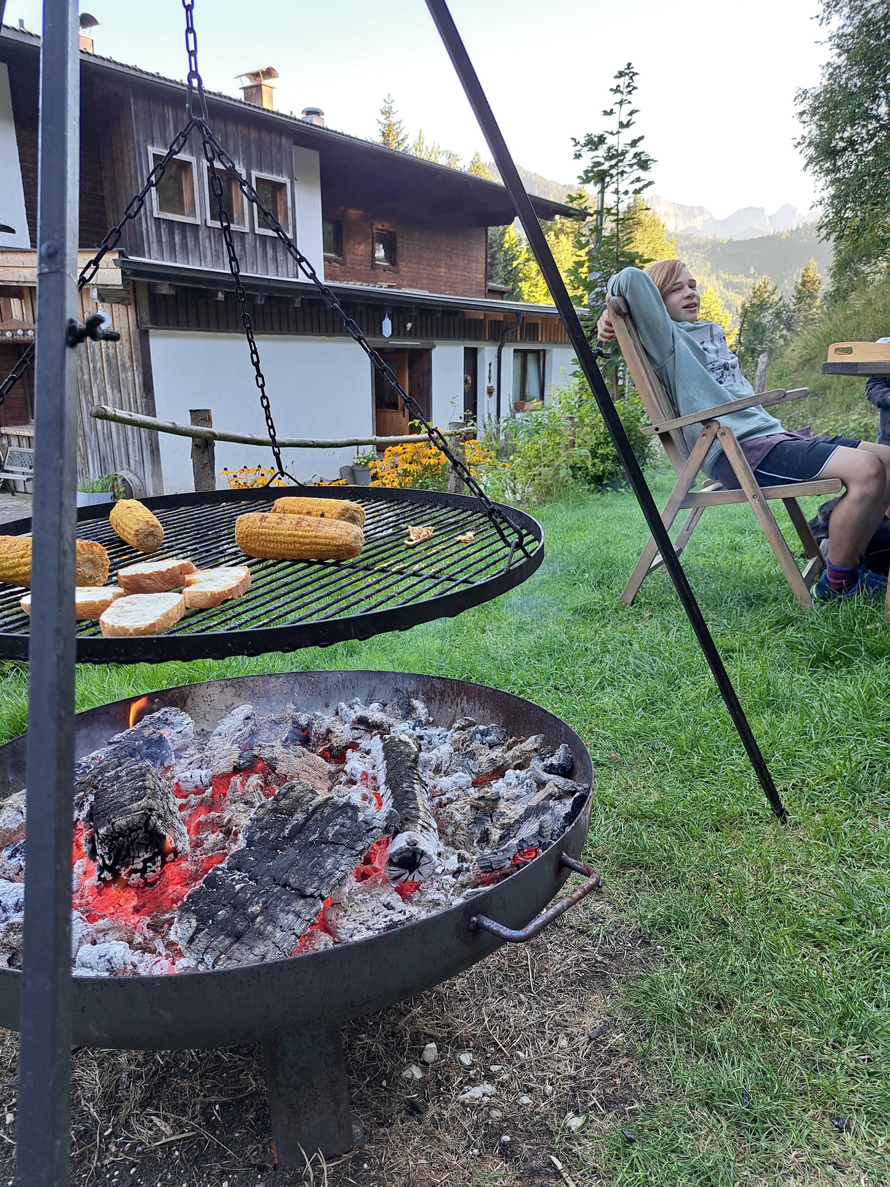 The large natural garden on approx. 200 m² offers plenty of space for young and old. Sun loungers, seating by the fire pit with a 3-legged grill are of course also included.