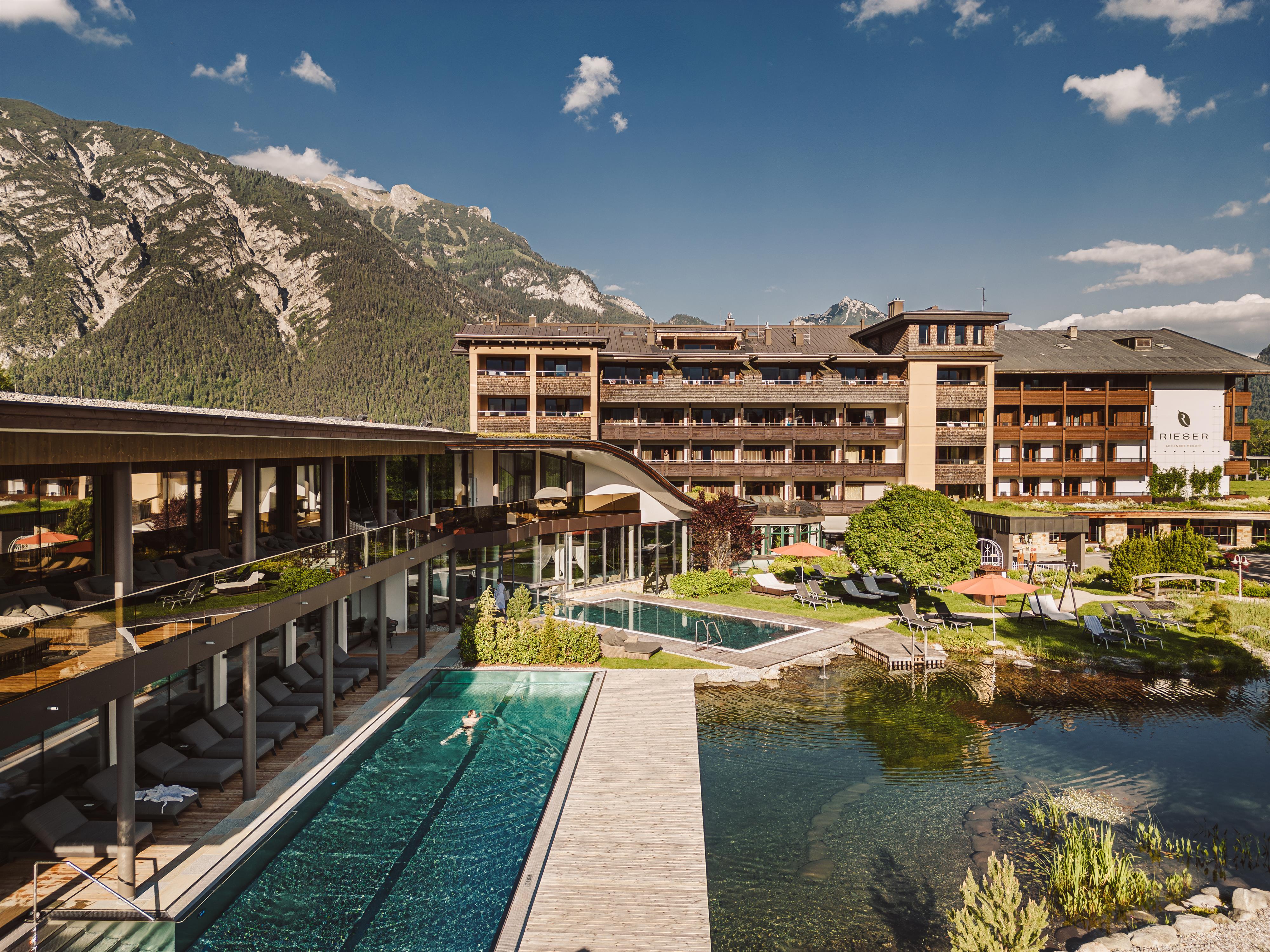 Experience Relax Enjoy: According to this motto, the Rieser family invites the recently expanded Rieser Achensee Resort at the "Sea of Tyrol". The new SeeSpa (15+) at the bathing pond with SeeSauna, two pools and exclusive relaxation rooms, blends harmoniously with the already existing spa and pool areas. A new exercise room with an inspiring view of the forest and an innovative fitness room, in combination with the daily activity and vitality program, provide a successful break from the sweet idleness. There is also news for younger guests: the new MiniSplash pool landscape with textile sauna makes children's eyes light up. Living in the Rieser becomes from now on still more the experience: Three new Suite categories for pairs and families unite on up to 93 m2 floor space, generosity with Design and luxurious extras. The absolute residential highlight is the Achensee SkyLoft with over 300 m2 indoor-outdoor living experience and, unique in Tyrol, private infinity pool.